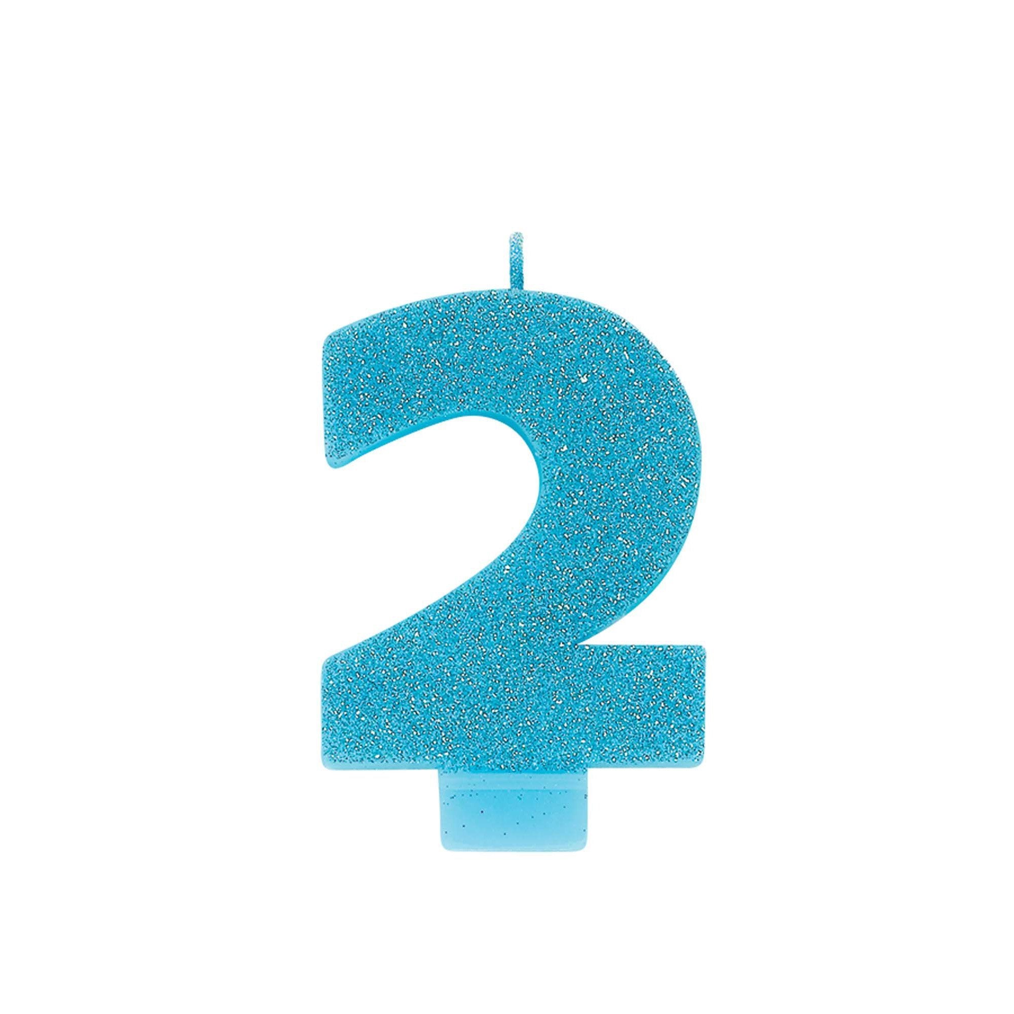 Number "2" Cake Candle Glitter - Caribbean Blue
