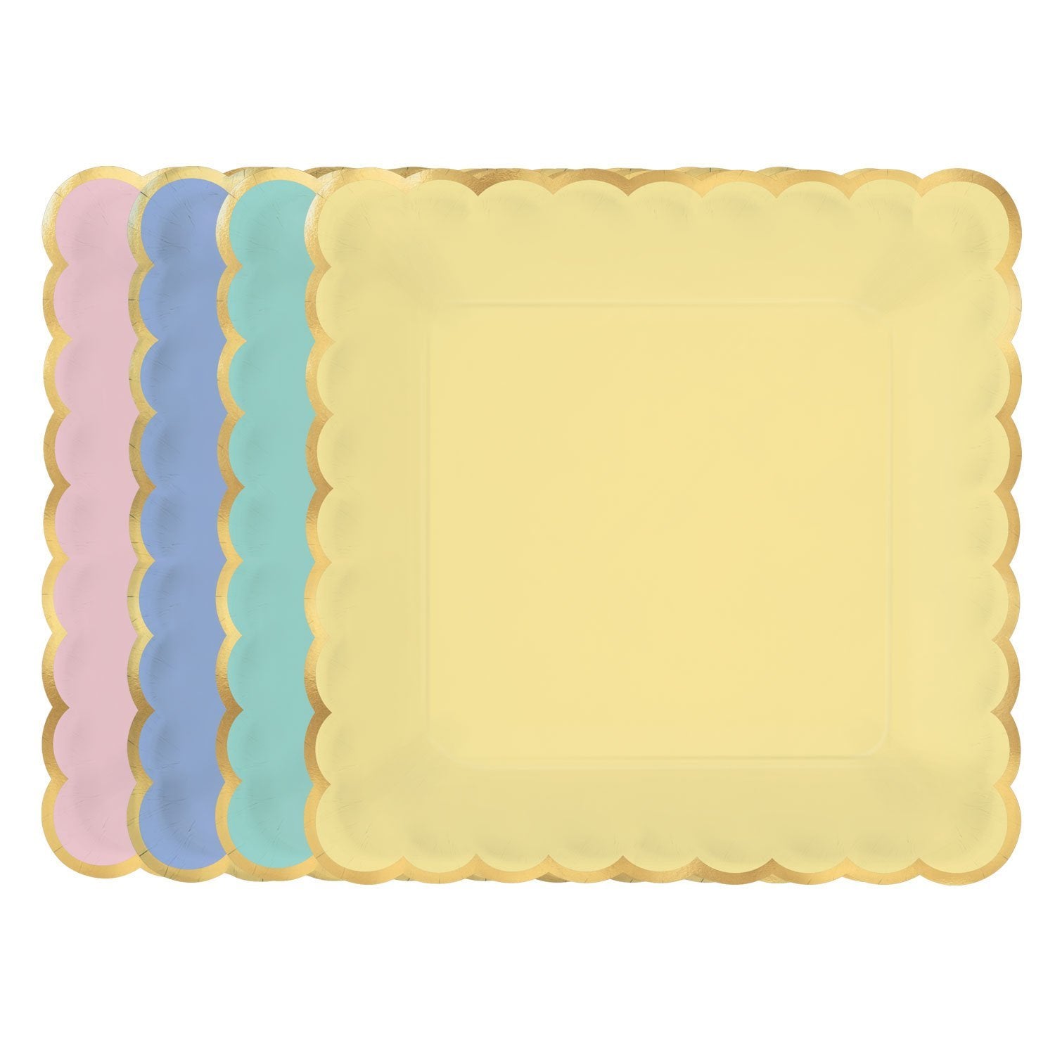 Spring Pastels Scalloped Plates 7in - Metallic Paper - Pack of 8