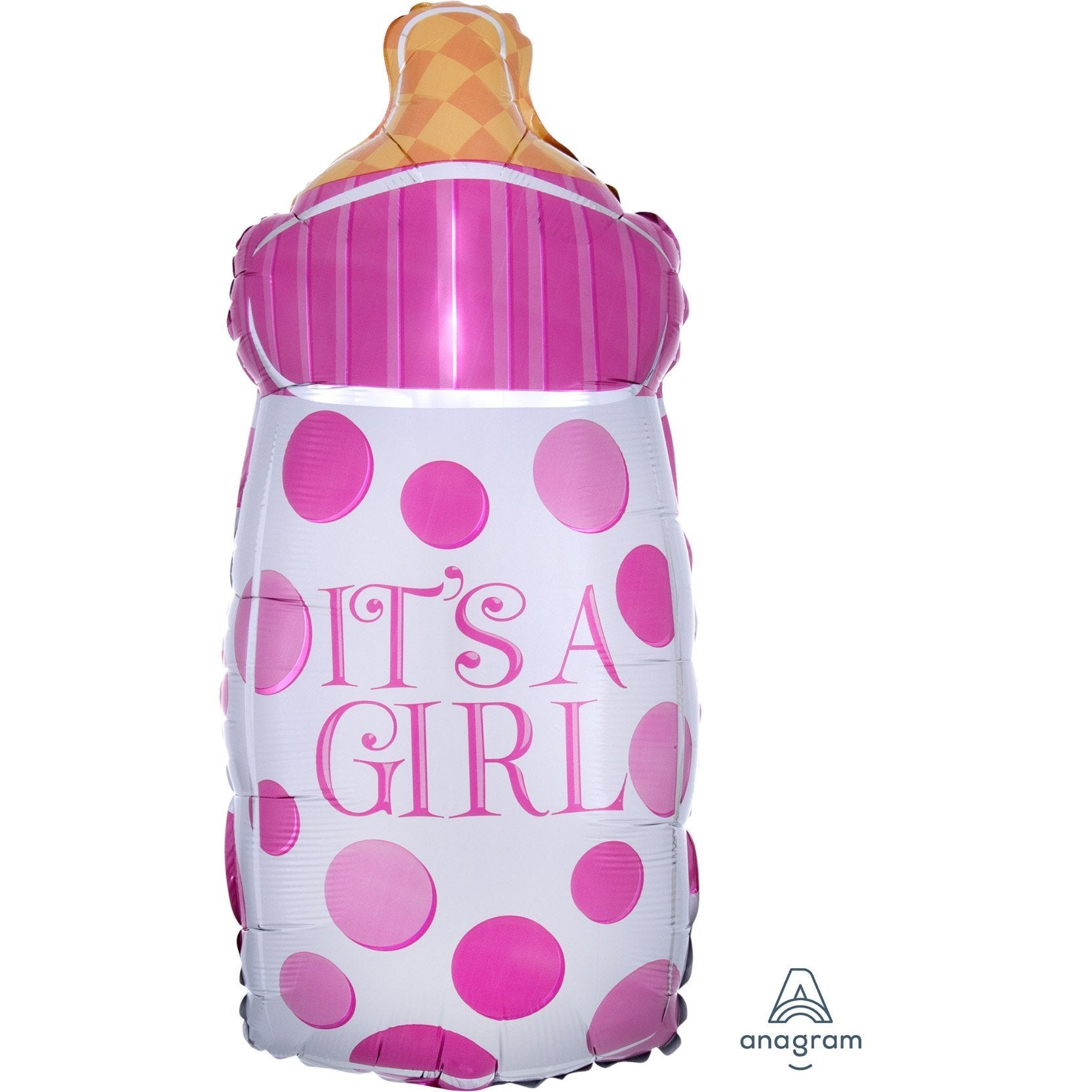 It's A Baby Girl - Bottle 1 Pink Die Cut Foil Balloon 10in x 23in / 26cm x 59cm