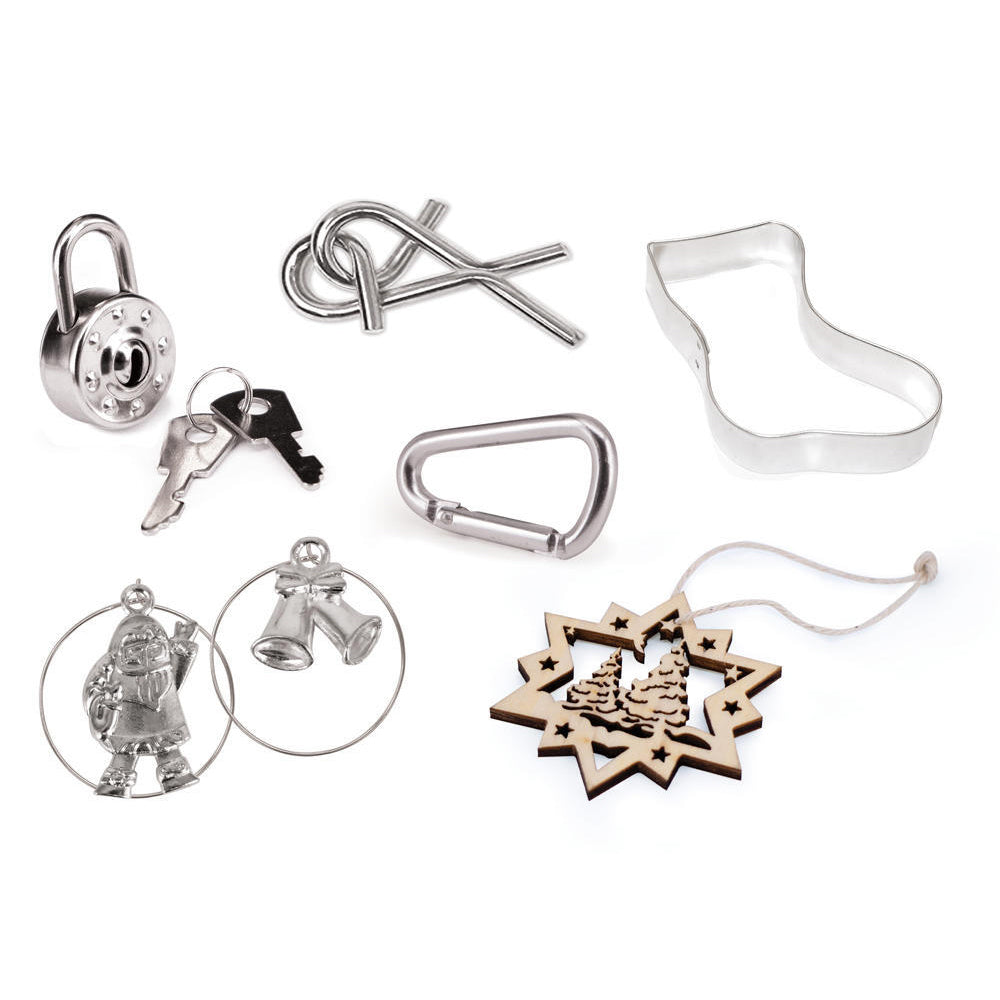 Each Cracker Contains a Hat, Satisfying Snap, Amusing Joke/Motto & One of the Following Gifts: Padlock with key, magic trick, stocking cookie cutter, wine charm, snap hook or wooden tree decoration. Gifts pictured may vary from image.