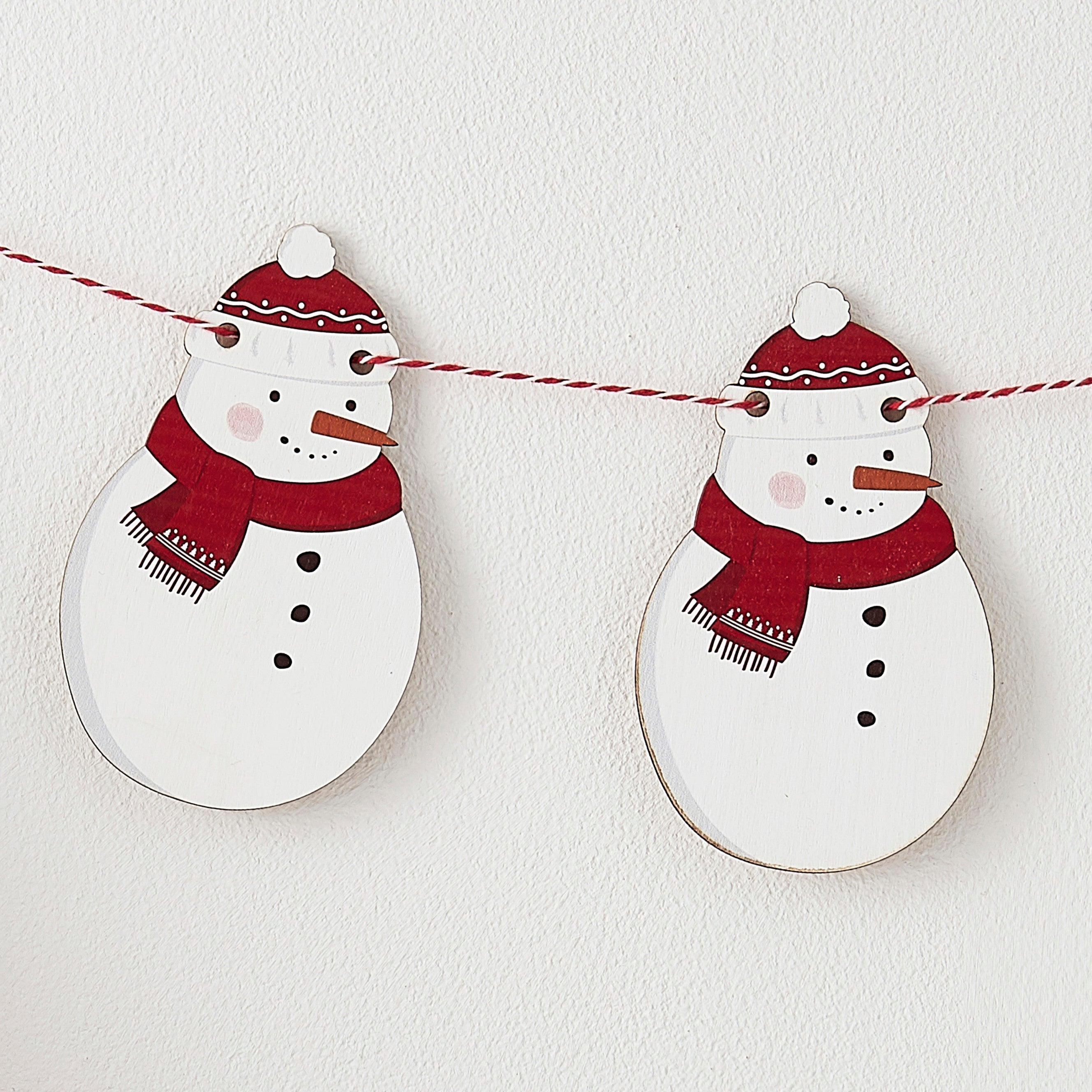 Add some festive character to your decorations with this adorable Snowman Christmas bunting. Each pack contains one snowman decoration bunting consisting of eight snowmen characters on 2m of red and white twine. Each snowman measures 13cm (H) x 8cm (W).