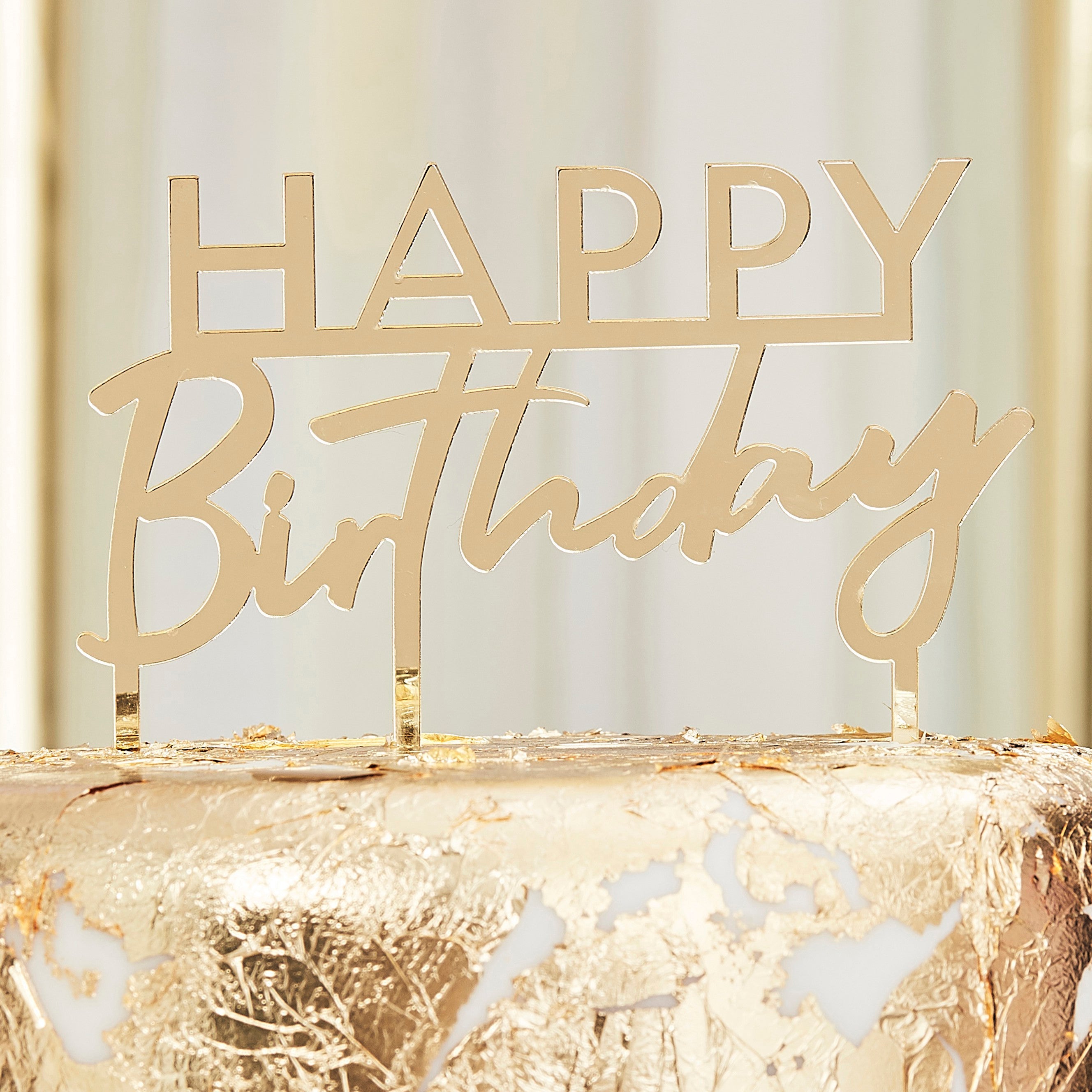 Ginger Ray Gold Acrylic Happy Birthday Cake Topper
