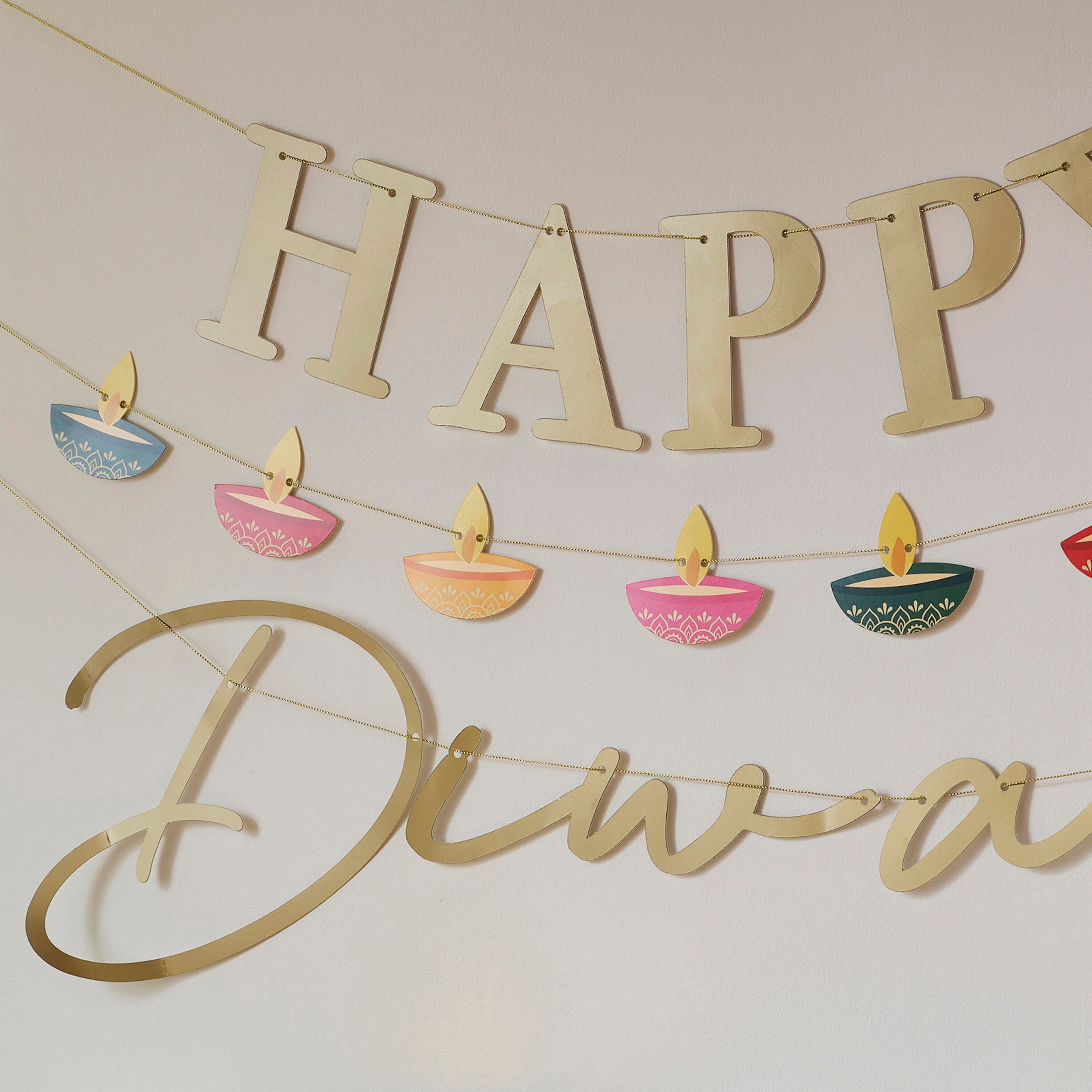 Gather together your loved ones and decorate for this stunning spiritual festival with this 'Happy Diwali' bunting.