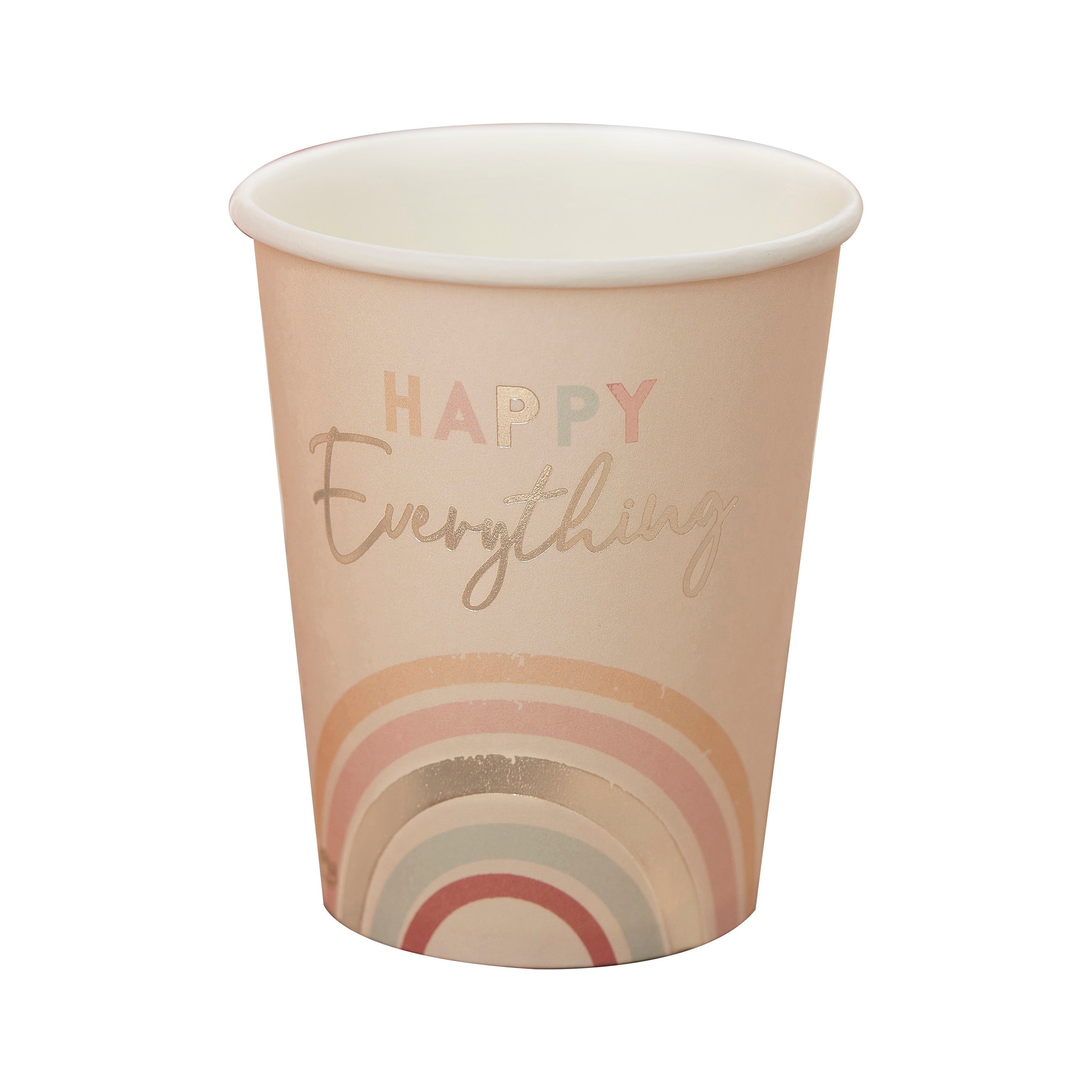 Ginger Ray Happy Everything Natural Rainbow Birthday Party Cups -Pack of 8