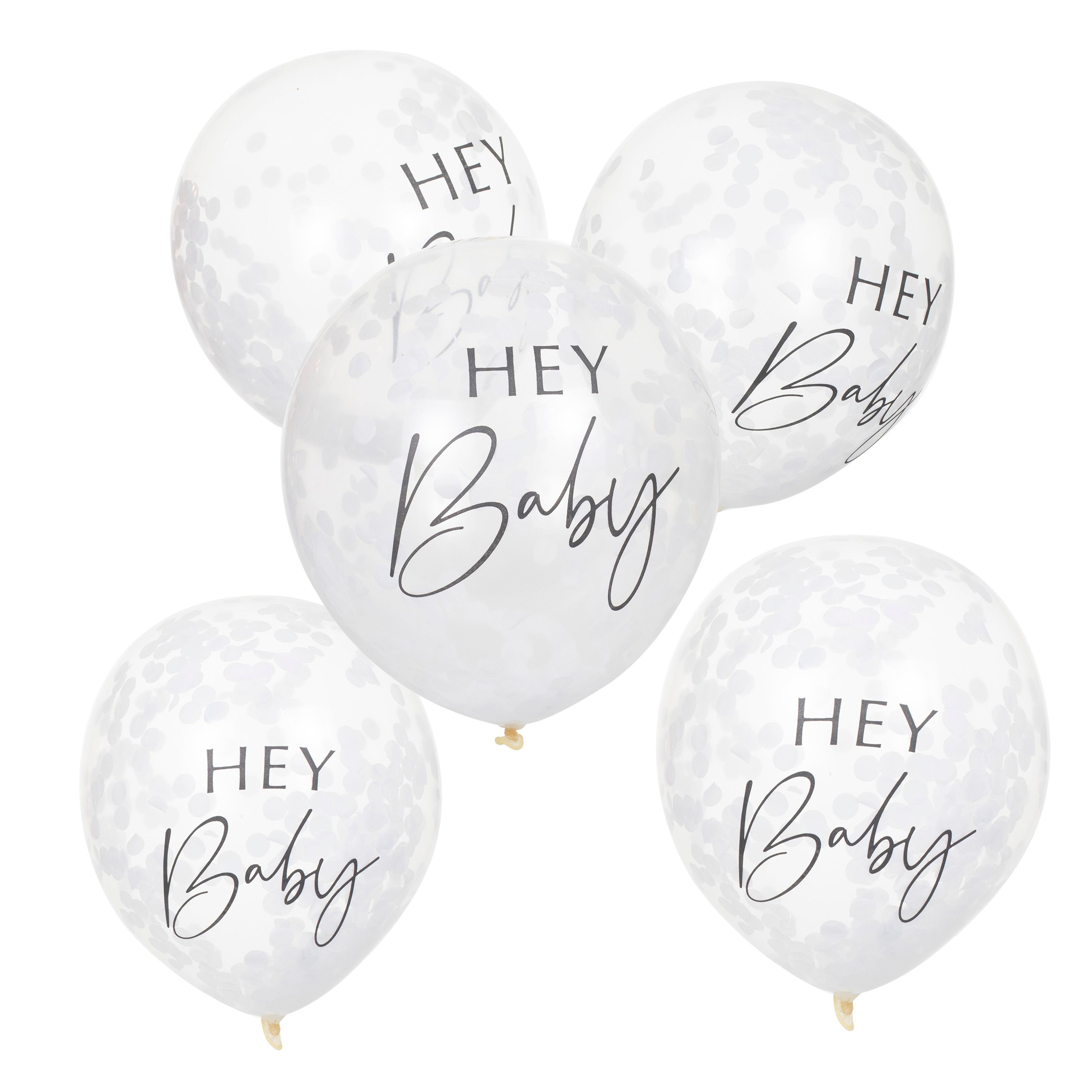 Ginger Ray Hey Baby White Confetti Latex Balloon 12in - Pack of 5