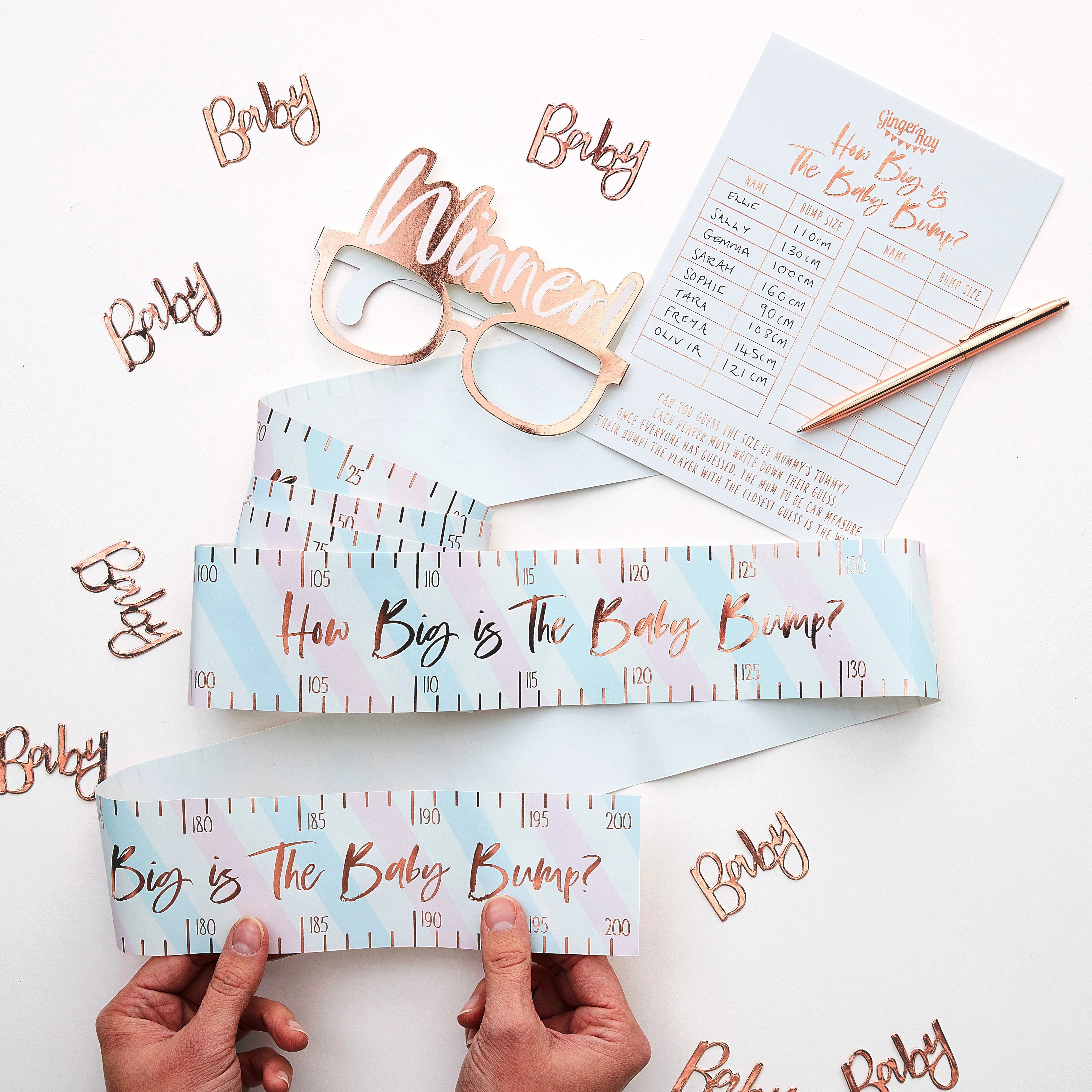 The party fun won't stop with our measure the baby bump game. Bring guests together as you all guess the size of the baby bump. Who can guess the size of the baby bump with the power of your eyes!