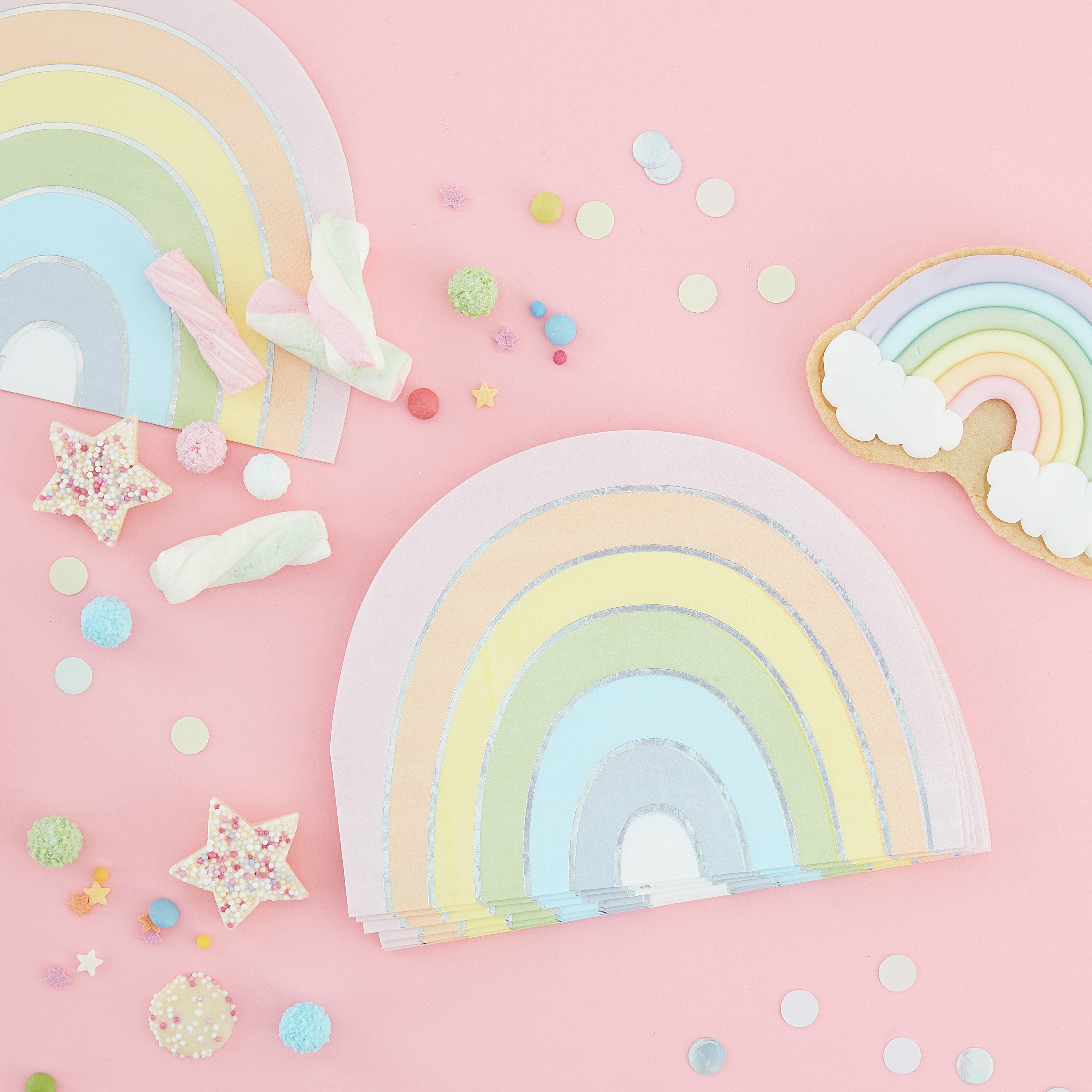 Pastel & Iridescent Rainbow Paper Napkins - Pastel Party - Pack of 16