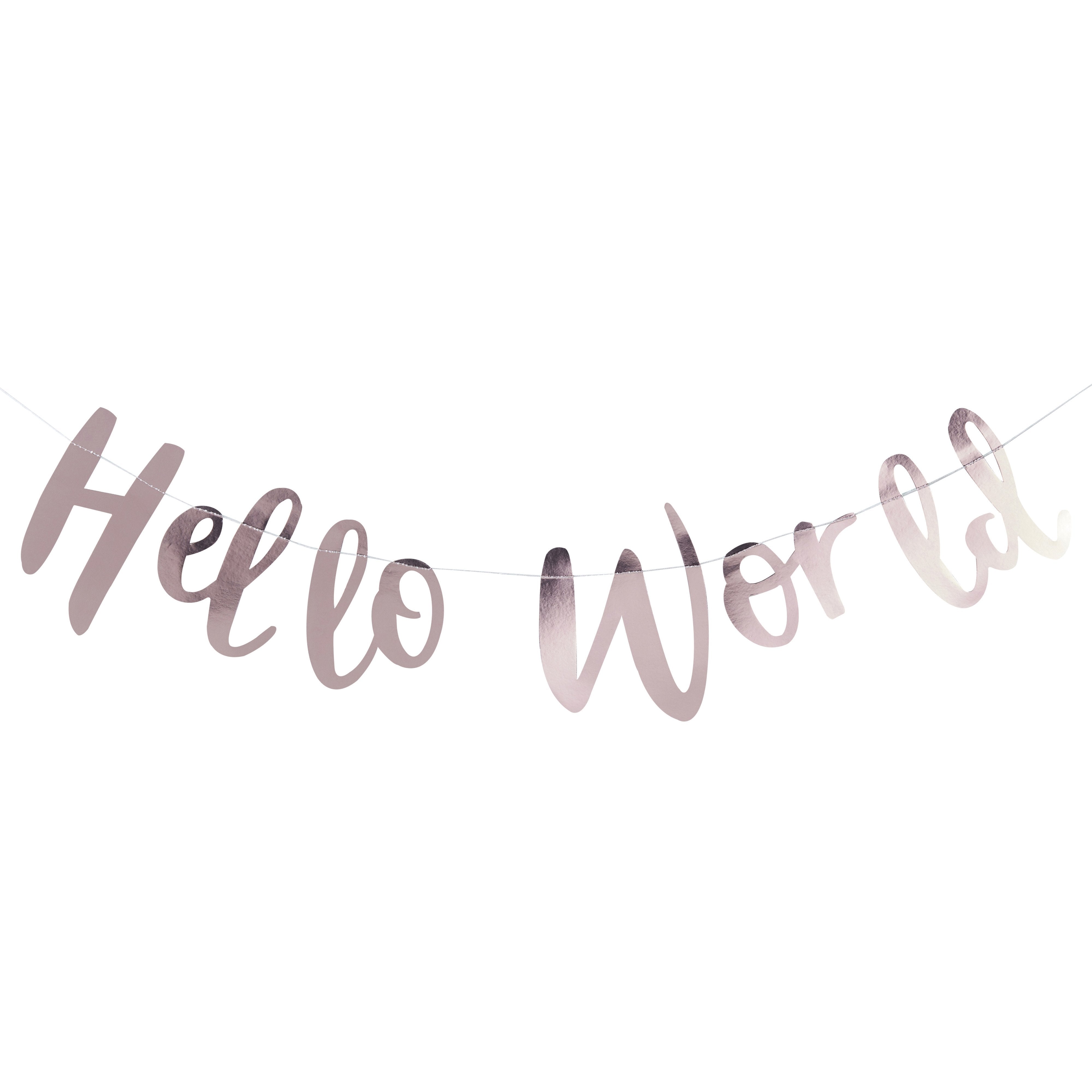 Add sparkle with our Hello World Rose Gold Backdrop.