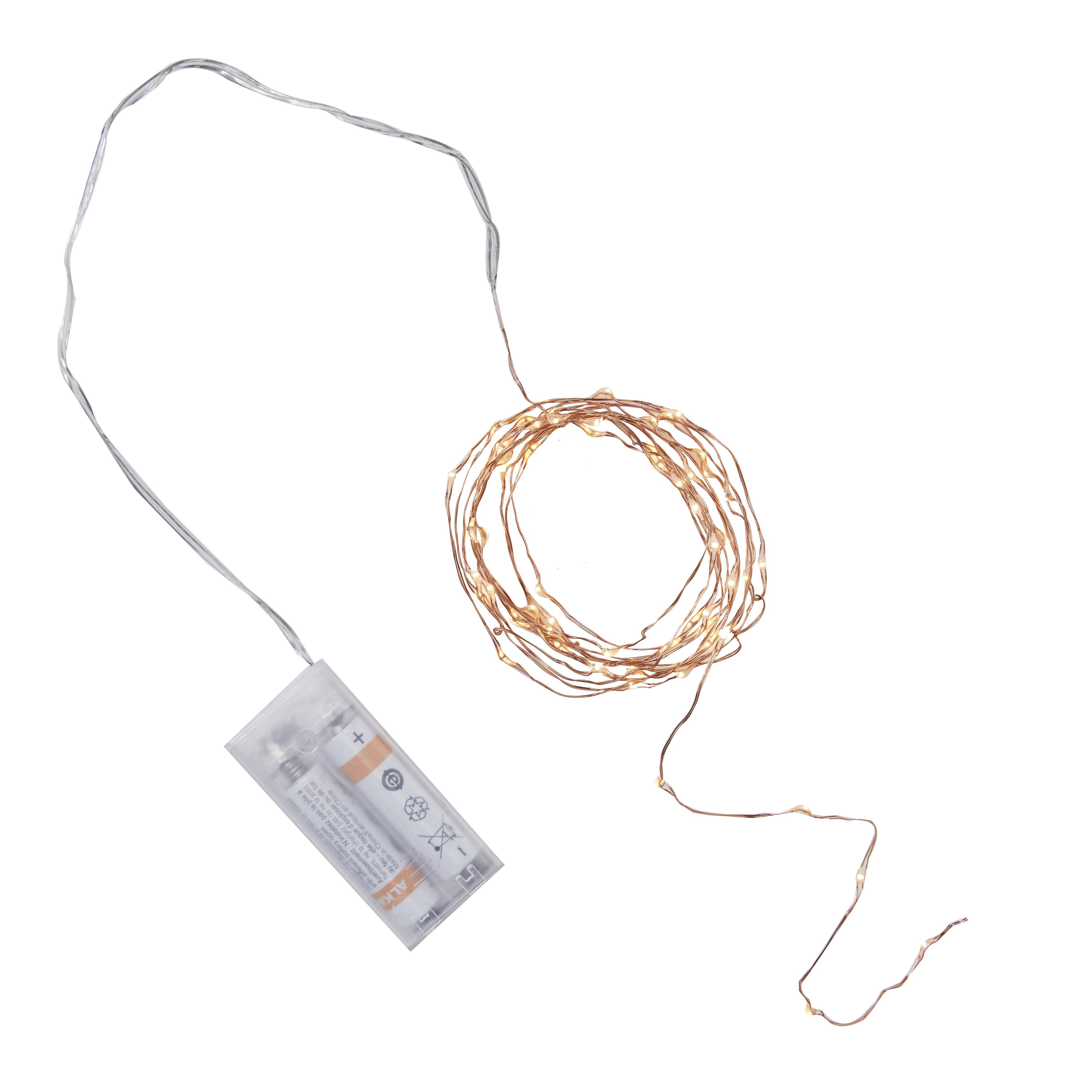These stunning copper wire strings 60 LED lights over 3 metres. The beautiful lights come with a battery pack which allows you to place them in any location, no need to plug in! 2x AA batteries are required and not included.