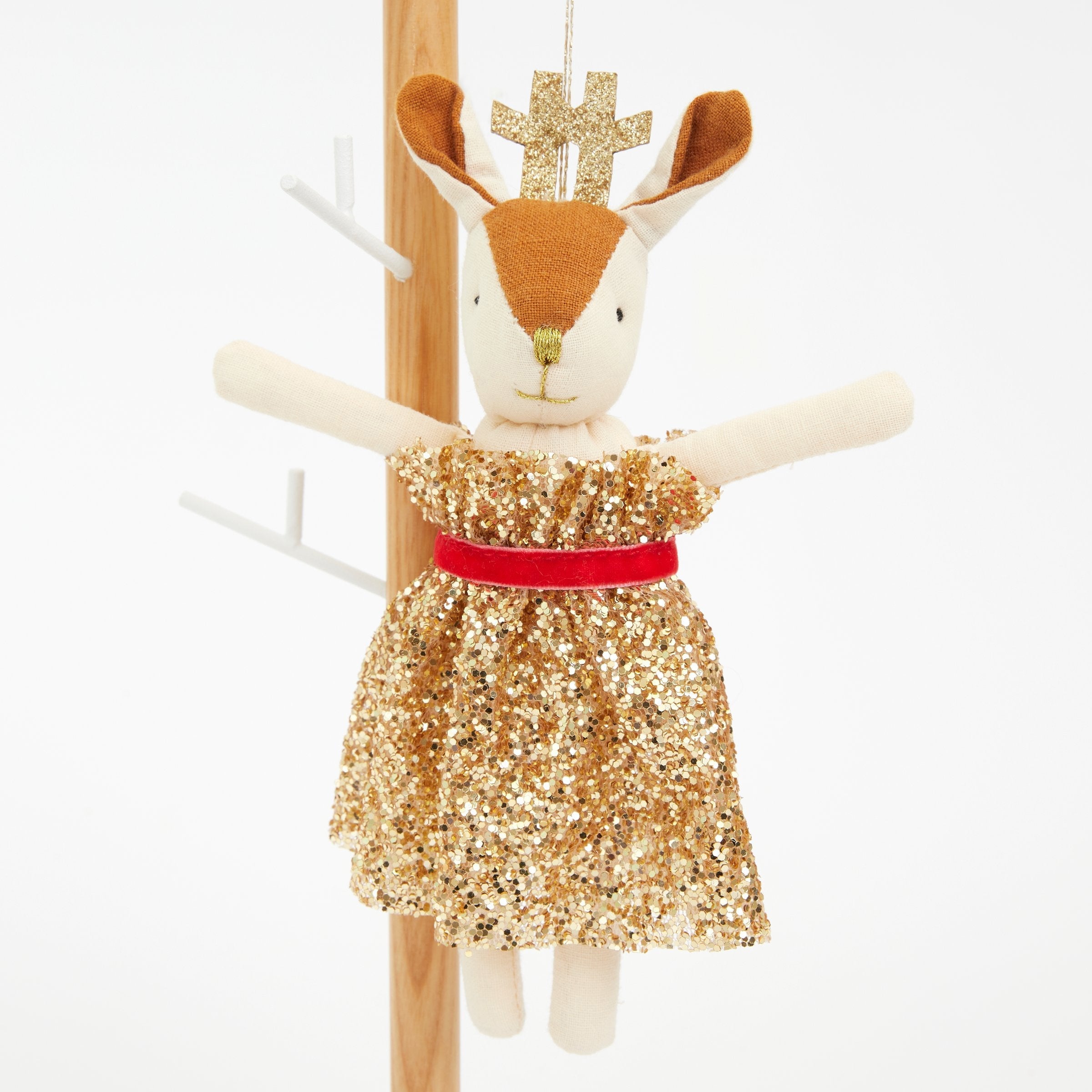 Make your Christmas tree look so festive with this fabulous Mrs Reindeer decoration. She's beautifully crafted from cotton with a glittery dress and antlers, and shimmering gold features. For an even more adorable look team her with a Mr Reindeer decoration, available separately.