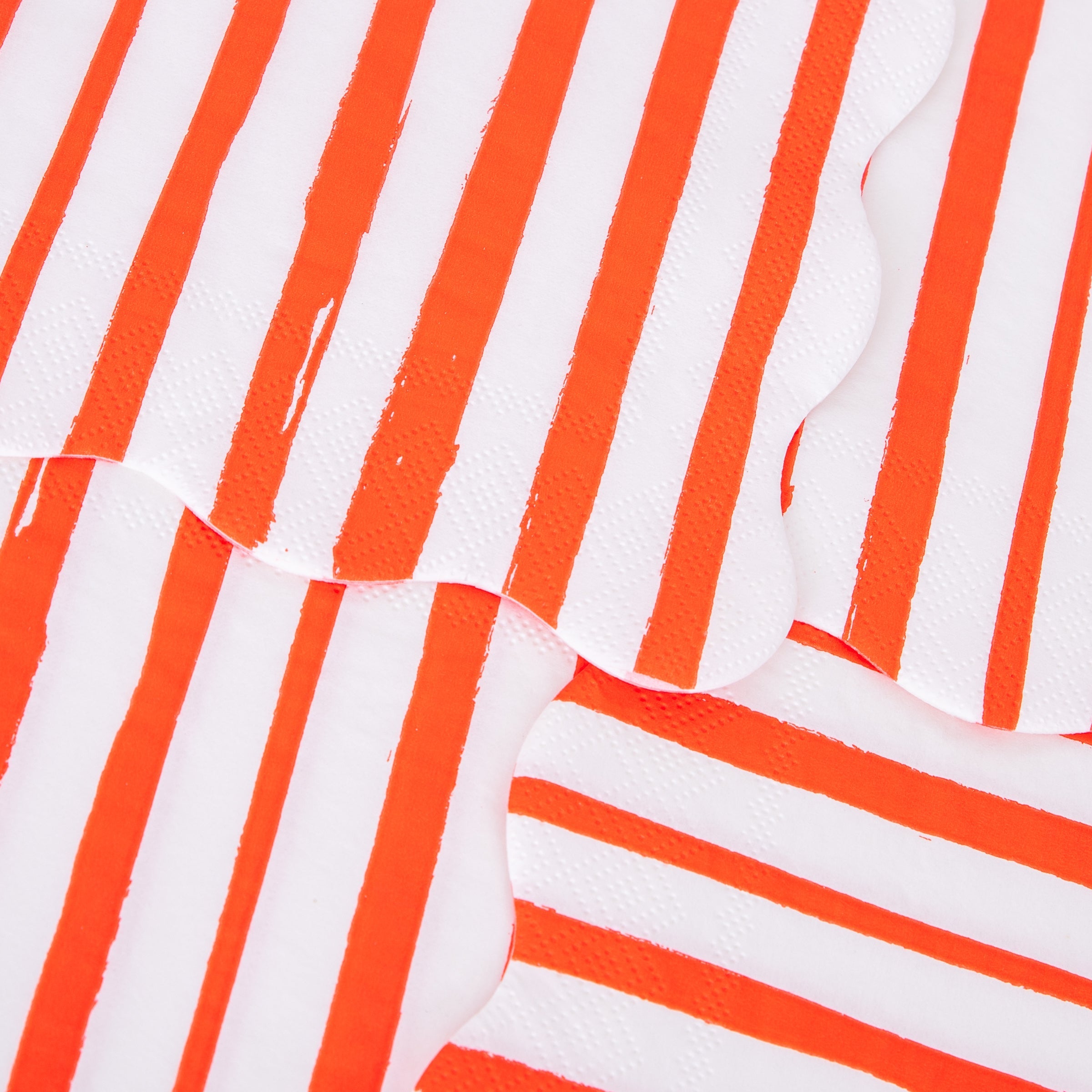 Red and white stripes are bright and cheerful - the perfect color theme for any special celebration. These napkins also have a delightful scalloped border for a stylish effect.