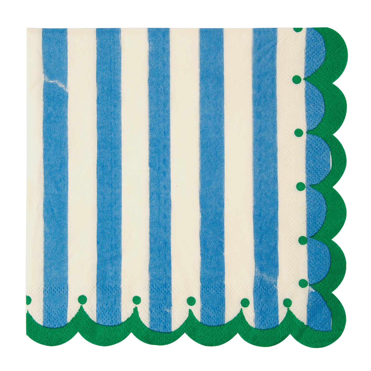 These stylish napkins are the icing on the cake for any celebration. Bold, striped pattern and a scalloped edge will brighten a party table and keep your guests impressed.
