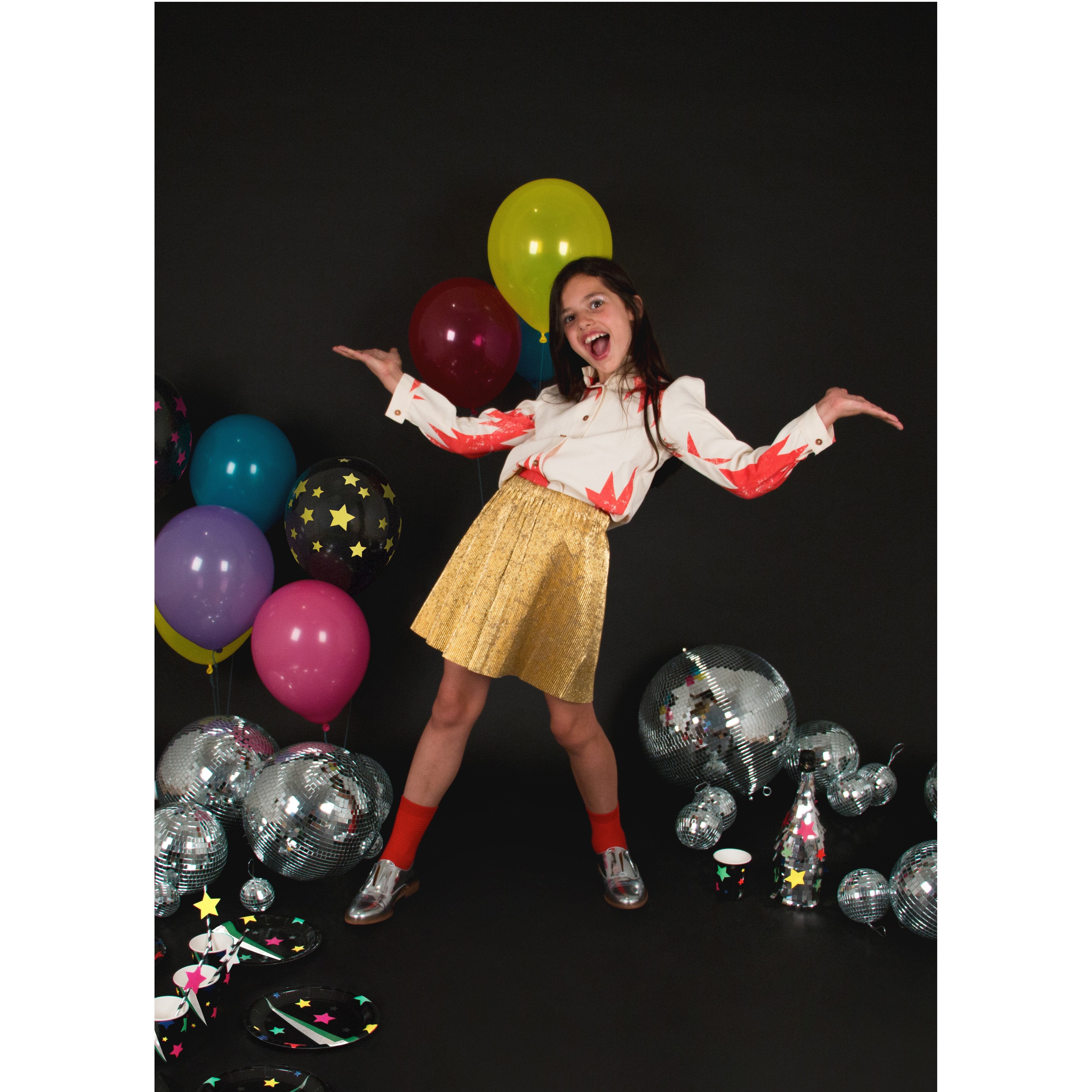 5 black balloons with multicoloured stars, designed by My Little Day.