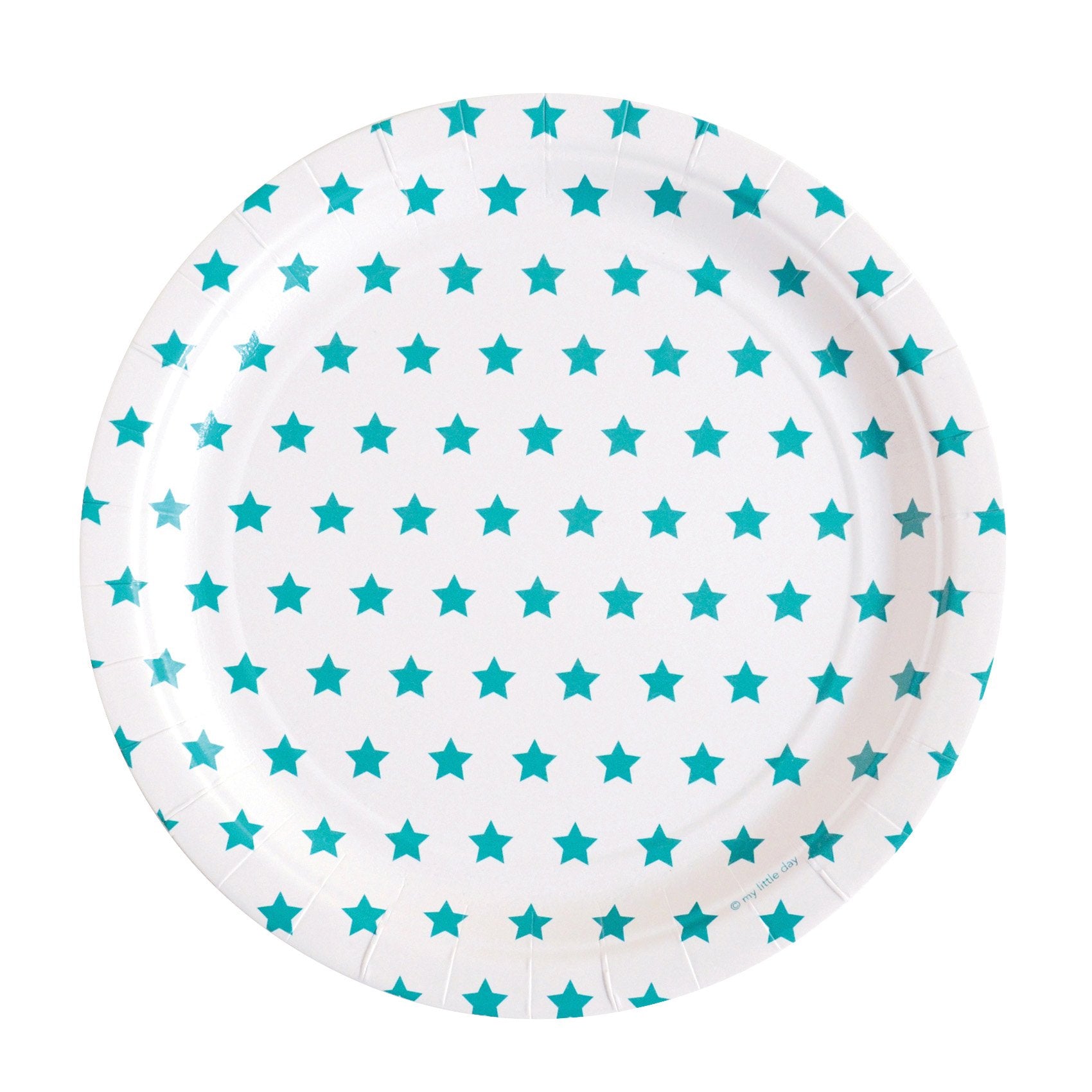 8 paper plates with little blue stars, designed by My Little Day.