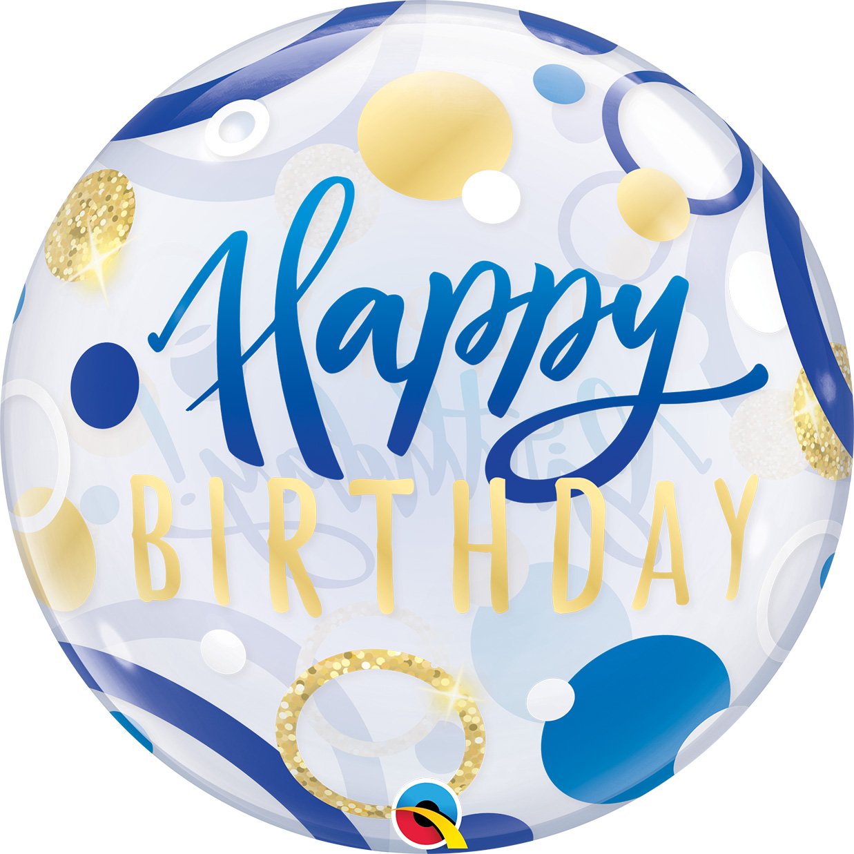 Birthday Blue & Gold Dots Round Bubble Balloon 22in / 55cm