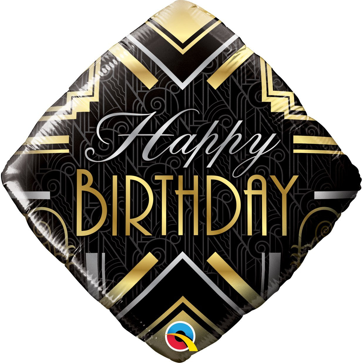 Happy Birthday Art Deco Foil Balloon 18in x 17in / 46cm x 43cm