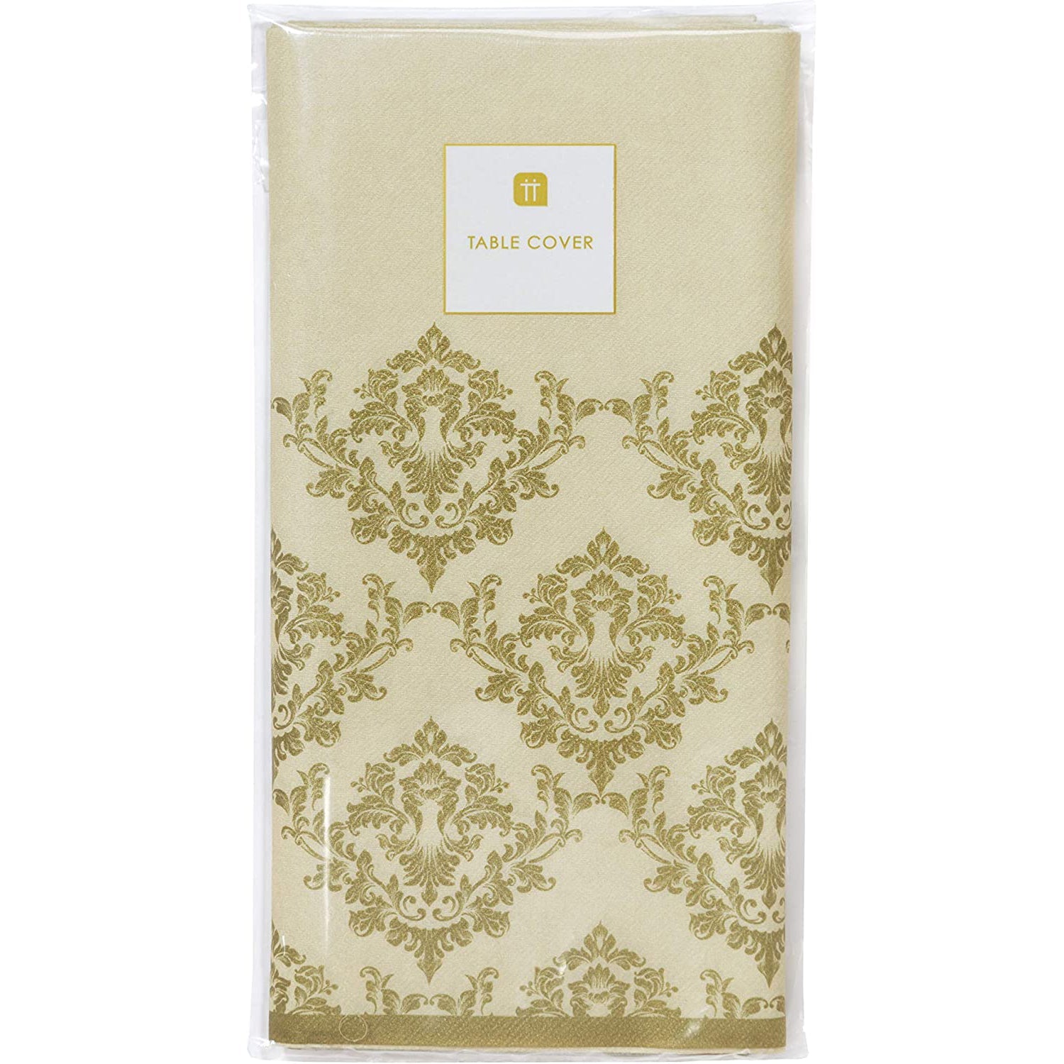 Add a touch of chic to your party with Talking Tables Gold Damask Paper Tablecloth Table Cover.