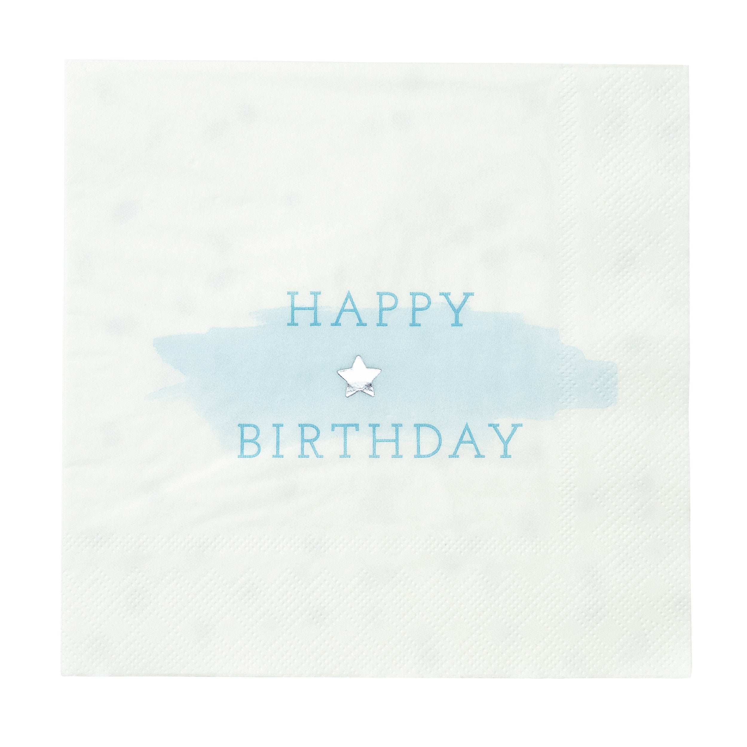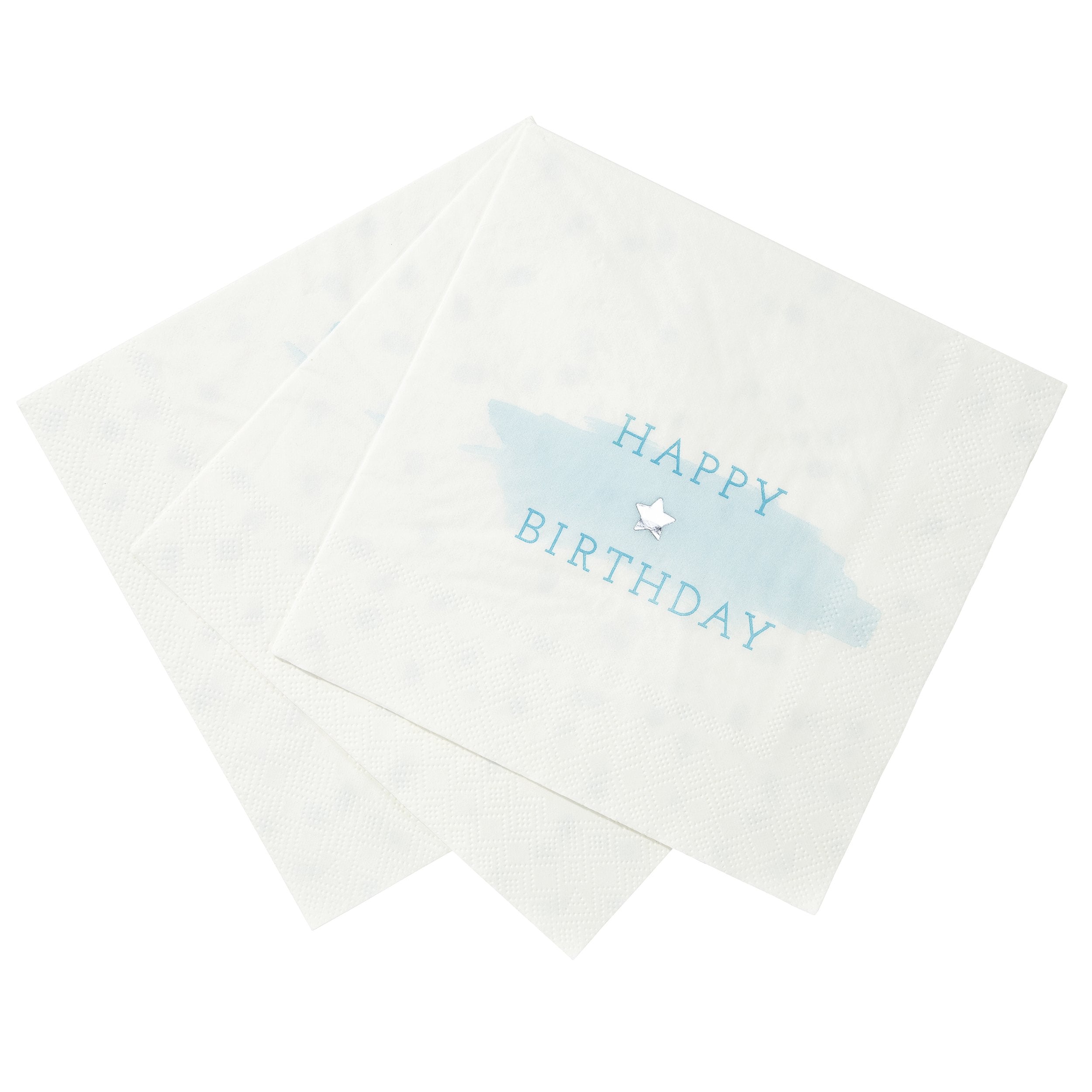 The simple happy birthday design features a cute silver foil detail star, ideal for any birthday celebration in the family! Each pack contains 16 paper napkins, with a cute blue ice cream dot detailed back.