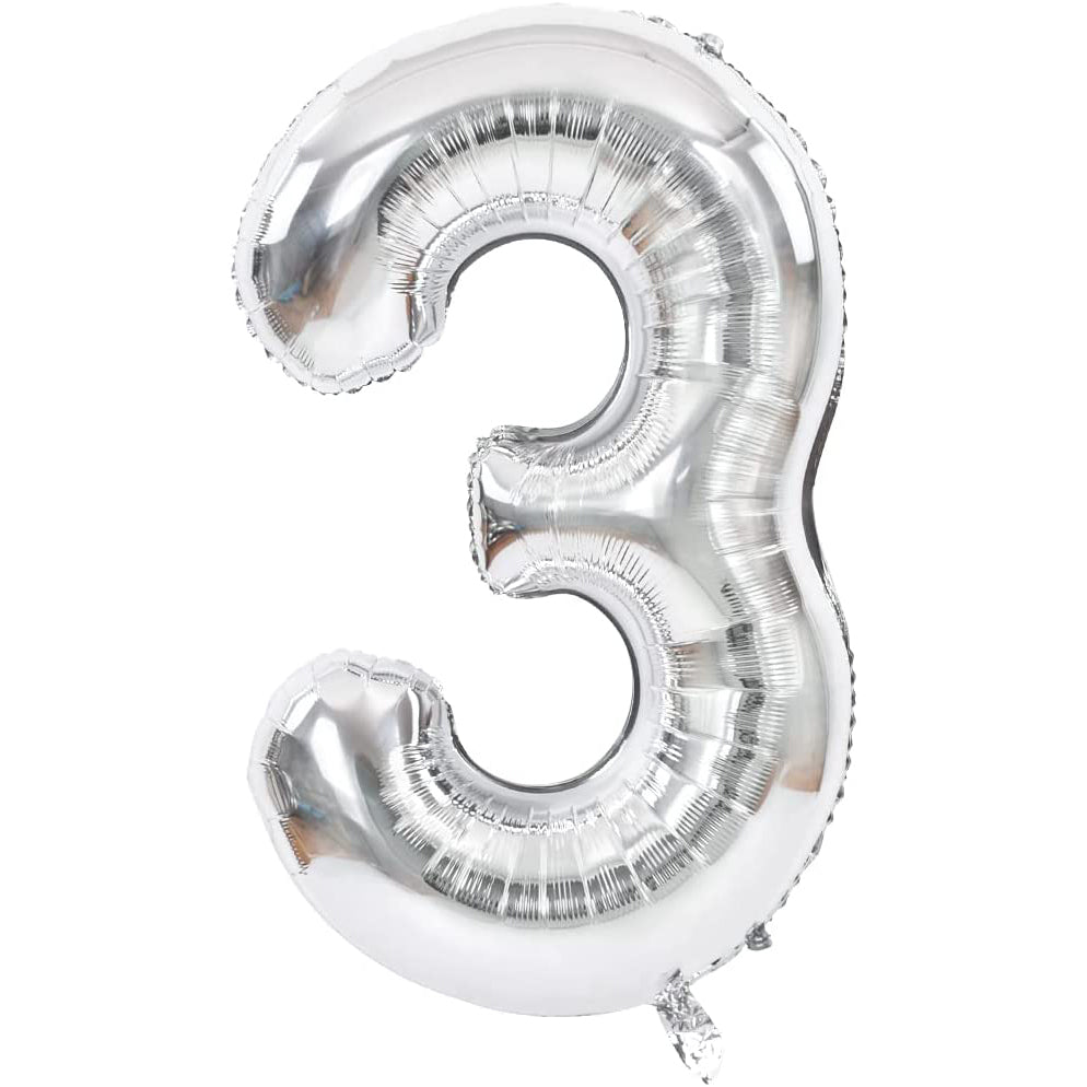 Number "3" Silver Air-Filled Foil Balloon 13.5in