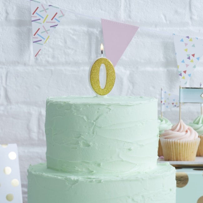 Ginger Ray Gold Glitter "0" Number Candle - Pick and Mix
