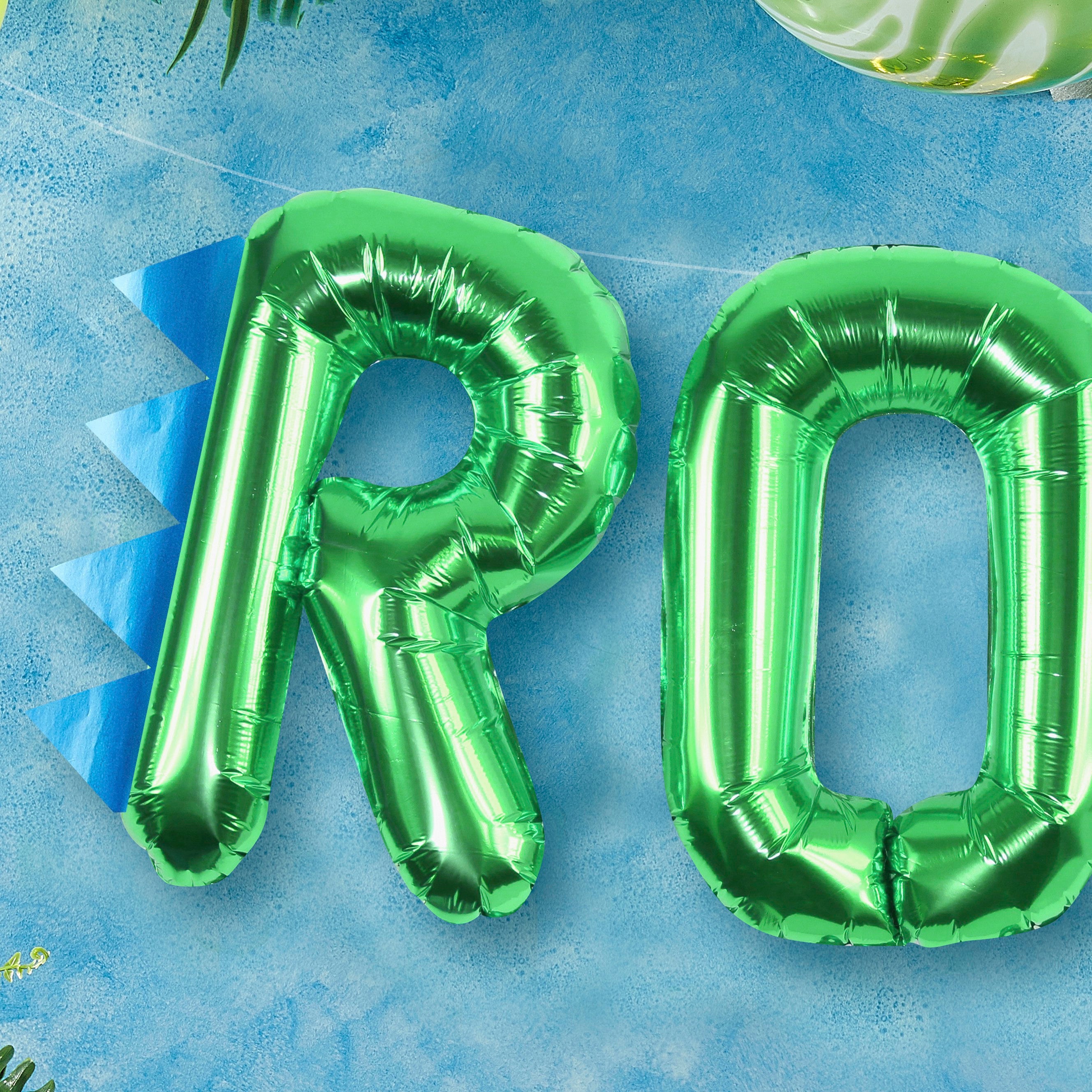 Ginger Ray "ROAR" Green Air-filled Foil Balloon Bunting 16in