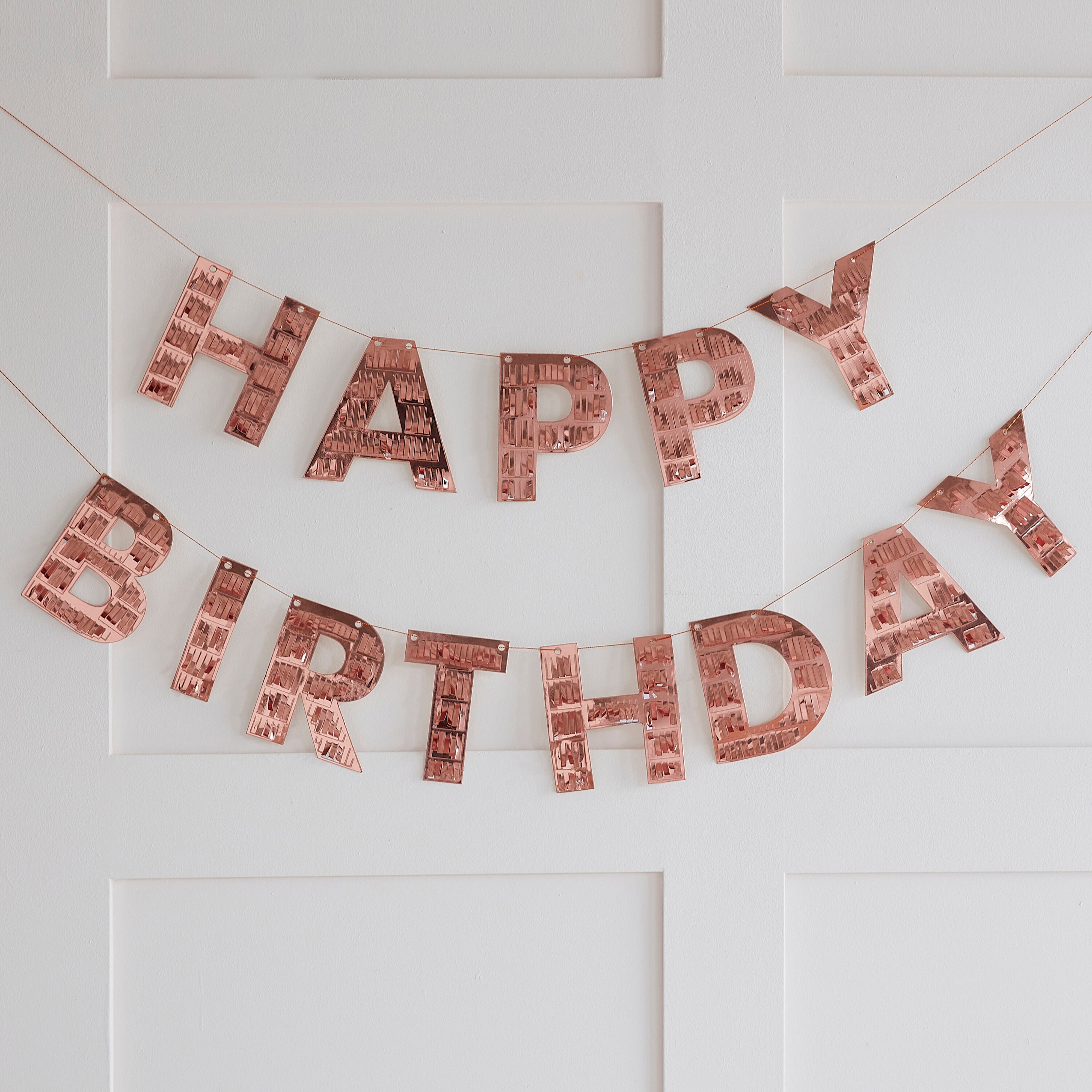 Ginger Ray Rose Gold Fringe Happy Birthday Bunting