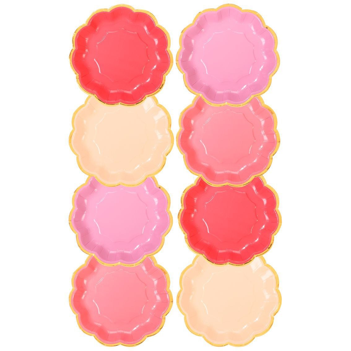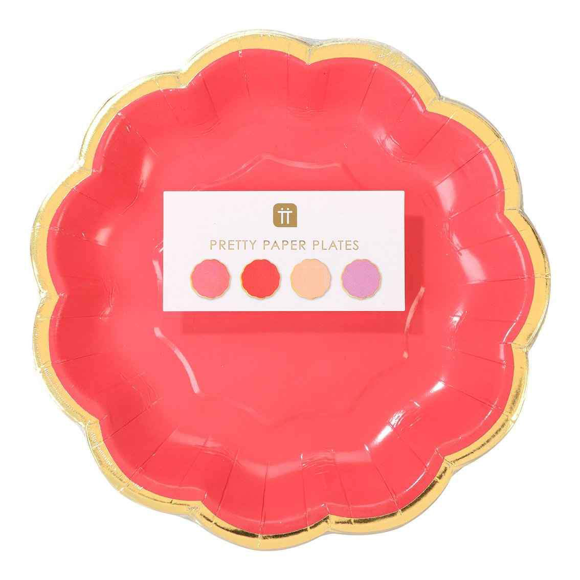 These pretty pink plates are perfect for serving cake and party food at a birthday party, afternoon tea, baby shower or on Valentine's Day. Coming in 4 shades of pink with a gold foil trim and scalloped edges, these party plates making an eye-catching addition to your table.